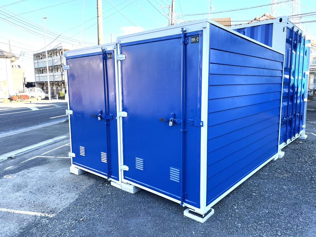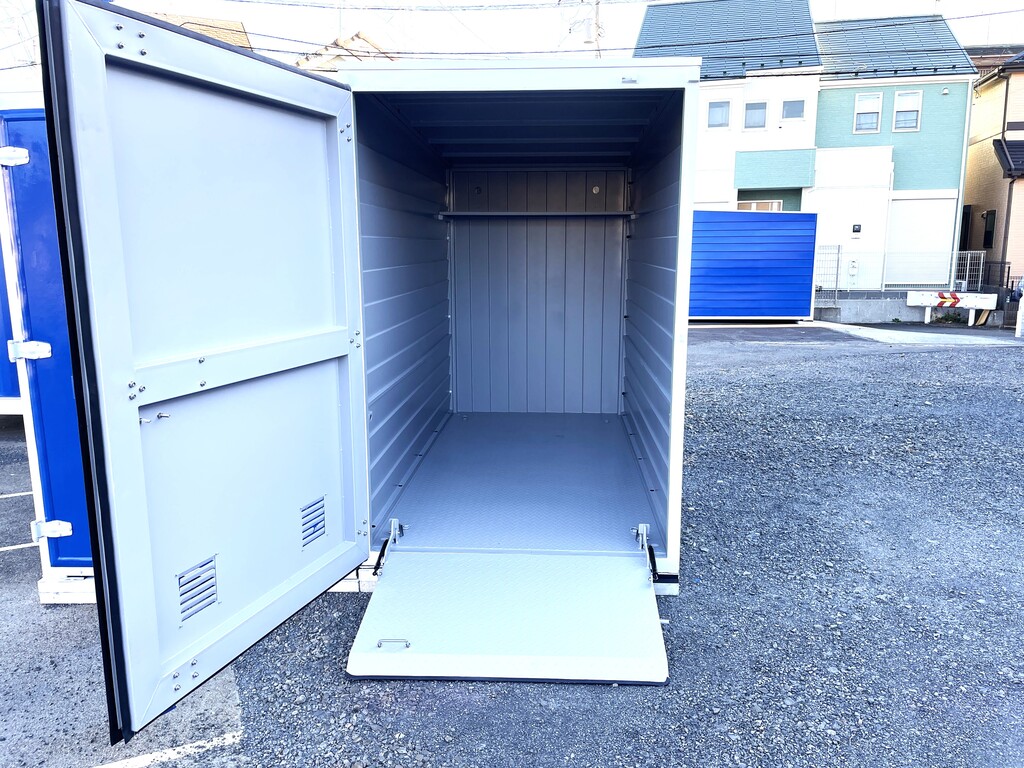 2.0帖サイズのバイク専用コンテナもご用意があります。スロープ付きでバイクの出し入れに便利です。
